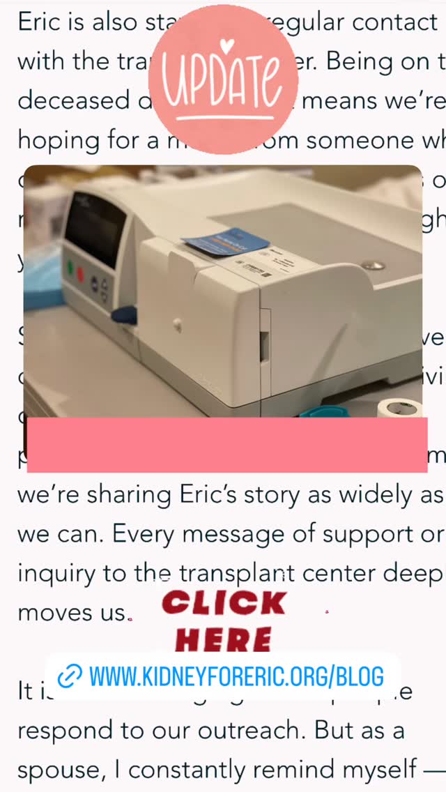 If you can help by sharing Eric’s story, getting tested, or simply spreading awareness about living kidney donation, his family is deeply grateful. Your support brings hope — and brings Eric one step closer to healing.